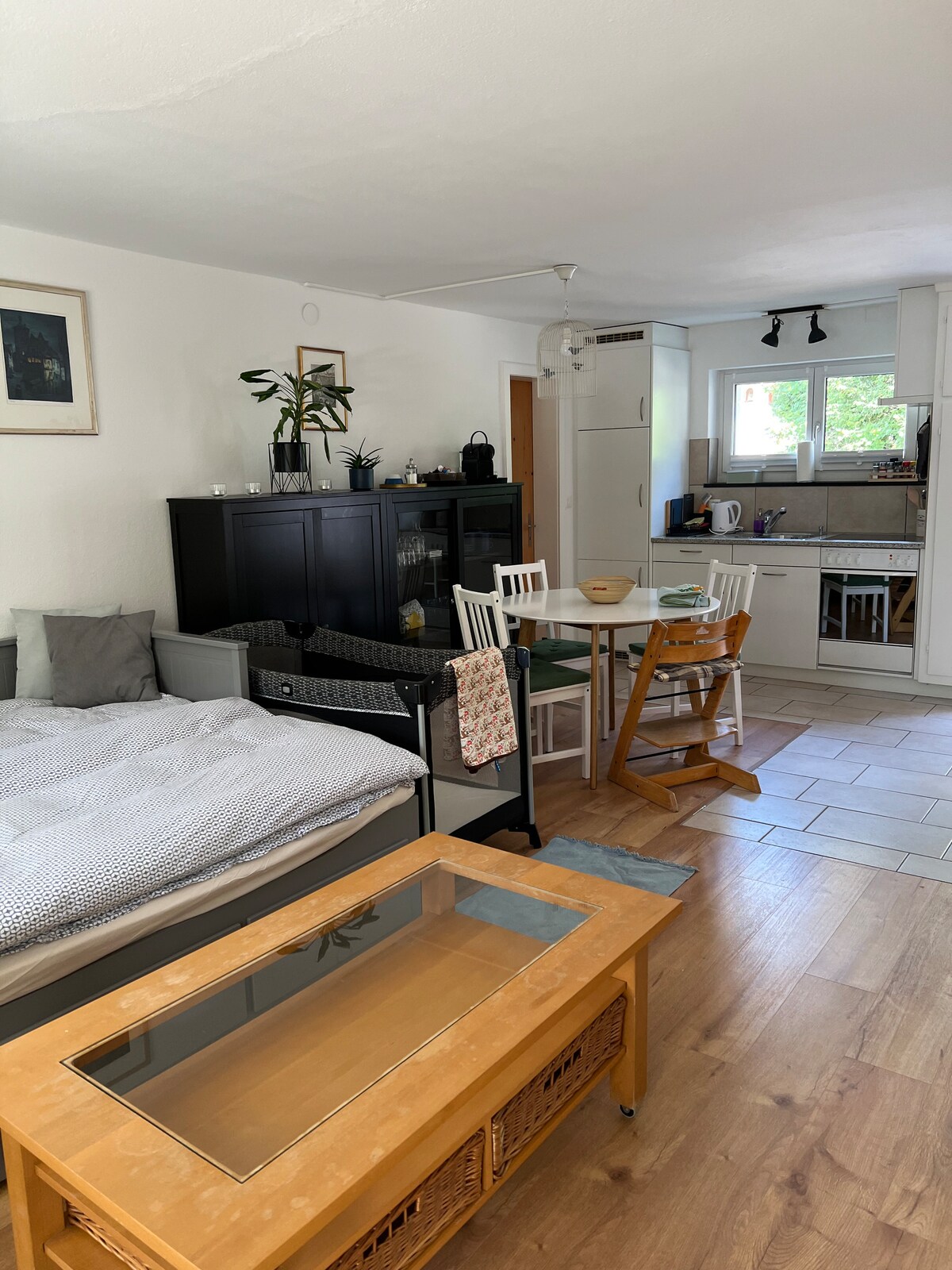 Onze studio is centraal gelegen, maar toch op een rustige locatie. Het is de perfecte uitvalsbasis voor veel activiteiten. In een paar minuten loop je naar de Badi (zomer), ijsbaan (winter), het sportcentrum met tennisbaan, speeltuin, dwergenpad, een kleine supermarkt en de bushalte is net om de hoek. (5 minuten met de bus naar het treinstation en het Gotschnabahn dalstation). Het langlaufpad ligt direct achter het huis. We wonen in hetzelfde huis met onze kinderen