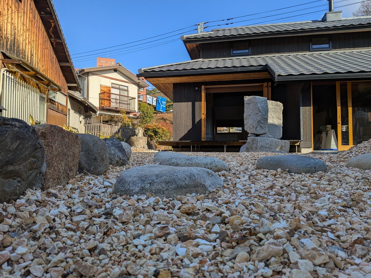 Suu is een privéverhuurvilla genesteld tussen de bergen en de zee van Futami, Ehime. Vanuit het raam zie je een rustig landschap met de zee en citrusboomgaarden in de verte. Ongeveer 40 minuten rijden van Matsuyama City. Toegang tot Dogo Onsen, Osu, Uchiko, etc. is ook goed, Je kunt het gebruiken als uitvalsbasis om op je gemak rond Ehime te reizen. In de woonkamer kun je lezen of koffie drinken in het zonlicht, Breng 's avonds een rustige tijd door, omgeven door een open haard en muziek. Je kunt genieten van koken in de keuken en barbecue op het dek. Suu is geen plek om je voor te bereiden op een speciale ervaring. In de natuur zijn en het licht, de wind en de geuren ervaren is een reis op zich.