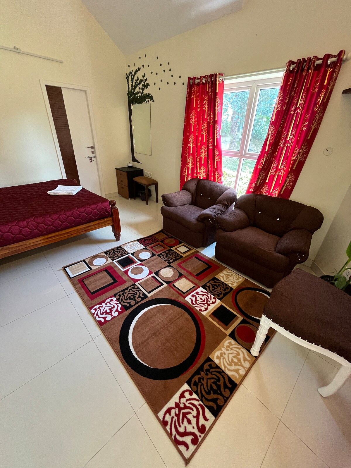 Genesteld tussen verticale perenbomen op een perceel van 30 cent, is Fairy Falls Road een gezellig huis met 6 slaapkamers met 4 kamers op de begane grond en 2 op de eerste, samen met gemeenschappelijke ruimtes. Elke kamer kijkt uit op de tuin. Voor kosteneffectiviteit zijn de prijzen gebaseerd op tweepersoonsbezetting - gasten betalen alleen voor kamers die ze gebruiken terwijl ze genieten van volledige privacy. Het tarief dekt 4 slaapkamers en 8 gasten. De villa biedt plaats aan maximaal 18 personen. Homestyle 2-gangen Zuid-Indisch ontbijt inbegrepen (thee/koffie extra)