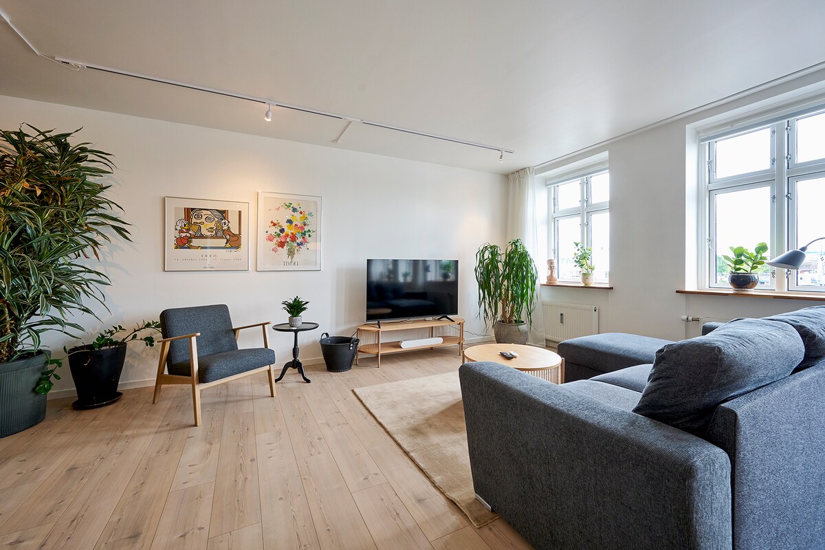 Charmant en licht appartement midden in Køge – op loopafstand van de haven, het plein, cafés en treinen naar Kopenhagen