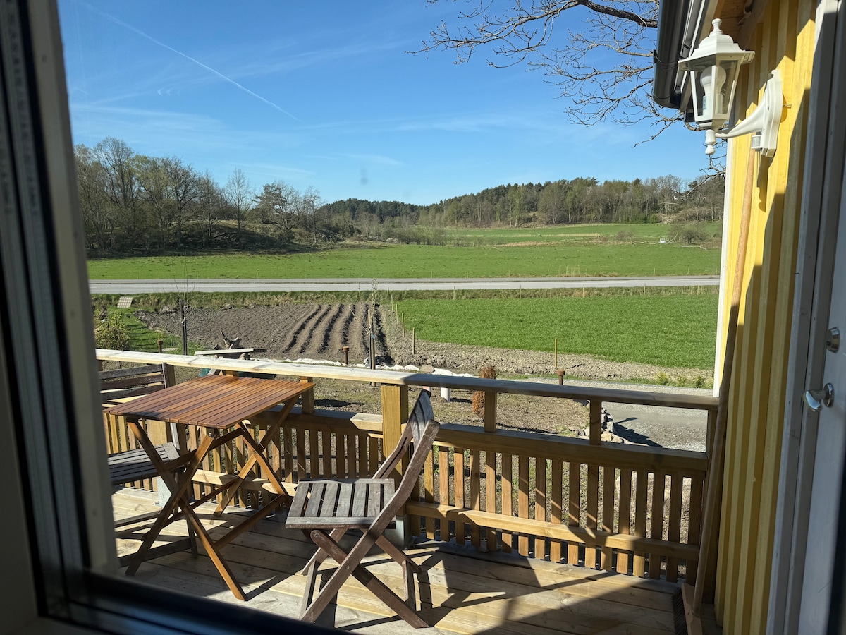 Het gastenappartement ligt in de schuur op onze boerderij in het natuurreservaat Stigfjorden. Je ziet het open landschap met velden en boerderijen, achter bergen en bossen om in te wandelen. Dichtstbijzijnde bad is 1 km. De stilte is belangrijk, zelfs tijdens de zomerperiode. Naar Skärhamn 12 km, Pilane Art 8 km en naar Sundsby landhuis 7 km. De kitchenette is voor eenvoudigere maaltijden, er is een grill beschikbaar en ruimte om buiten te zitten, zelfs als het regent. Kinderen en huisdieren zijn welkom. https://www.facebook.com/hjalmarsgard/