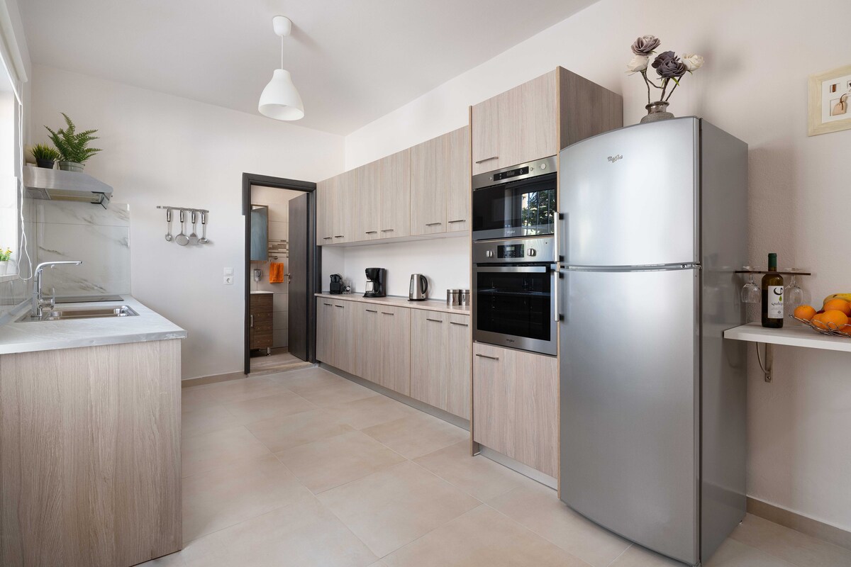 An amazing property, only 1km away from the sandy beach, among a green lush garden, will offer you unforgettable moments. The spacious patio is the ideal place to enjoy your favorite drink, gazing upon the magnificent sunsets or a meal cooked with local products on the BBQ! The sandy lacy coasts nearby, with the crystal-clear waters will amaze you. The area has a vivid nightlife, with many restaurants, traditional taverns and bars and offers opportunities for water sports. Free WIFI and parking