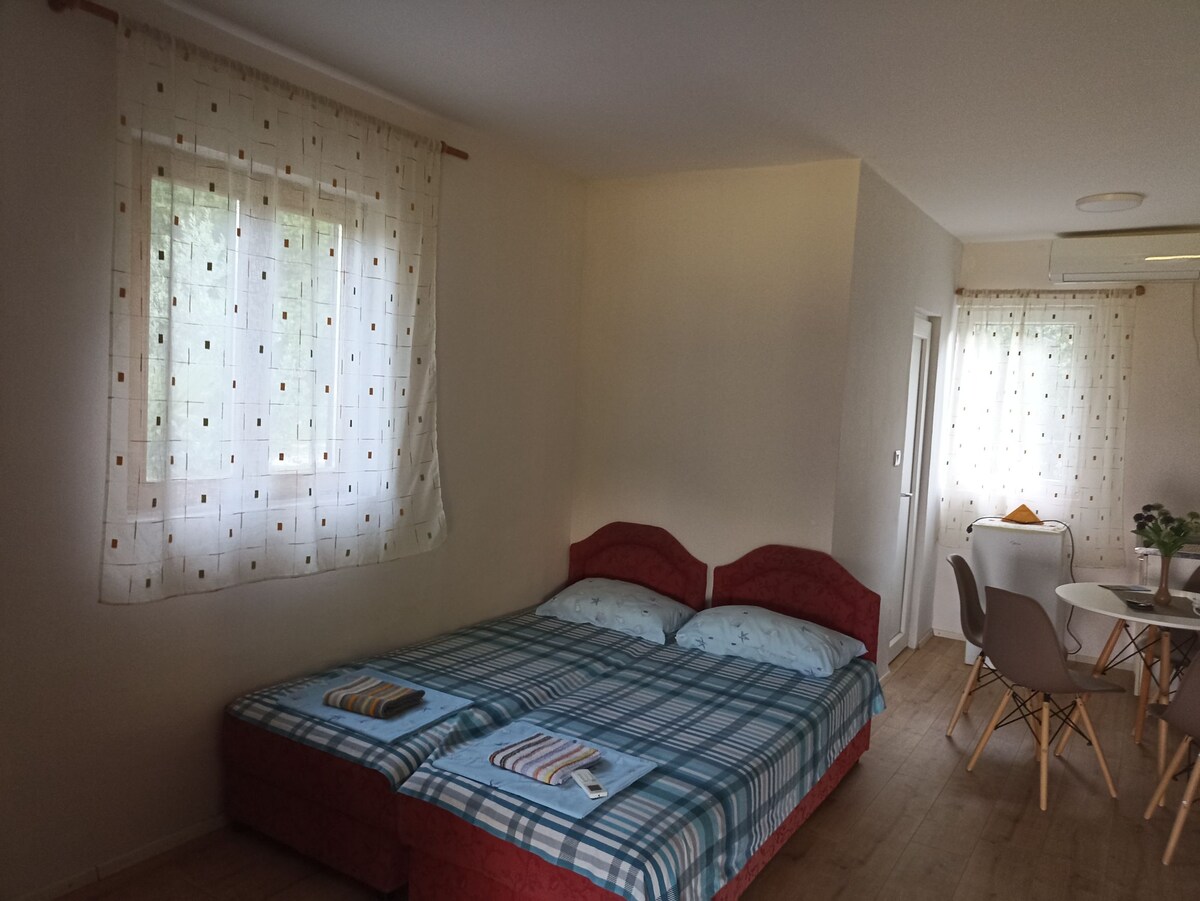 Wij zijn 3 km van de Virpazar - toeristisch centrum van het meer. Deze locatie is ideaal voor een bezoek aan alle schoonheden van Skadar Lake, en het is ook geweldig als je Montenegro alleen wilt bezoeken. Het bevat drie studio-appartementen met gratis parkeergelegenheid. Gasten kunnen ontspannen in onze tuin en wijngaard, omgeven door prachtige natuur. De toeristen kunnen ook genieten van onze oude wijngaarden en wijnproeverijen in onze wijnkelder. Traditioneel ontbijt, lunch en diner zijn beschikbaar, maar niet bij de prijs inbegrepen.