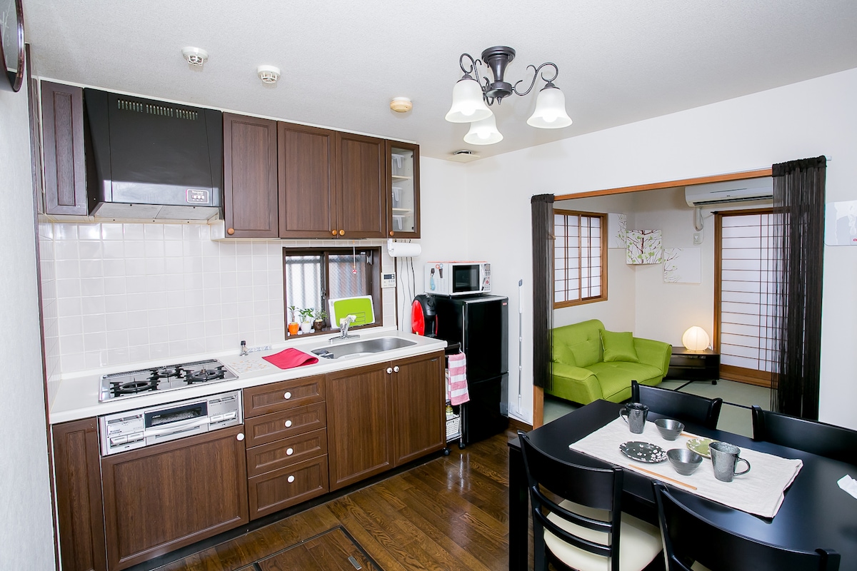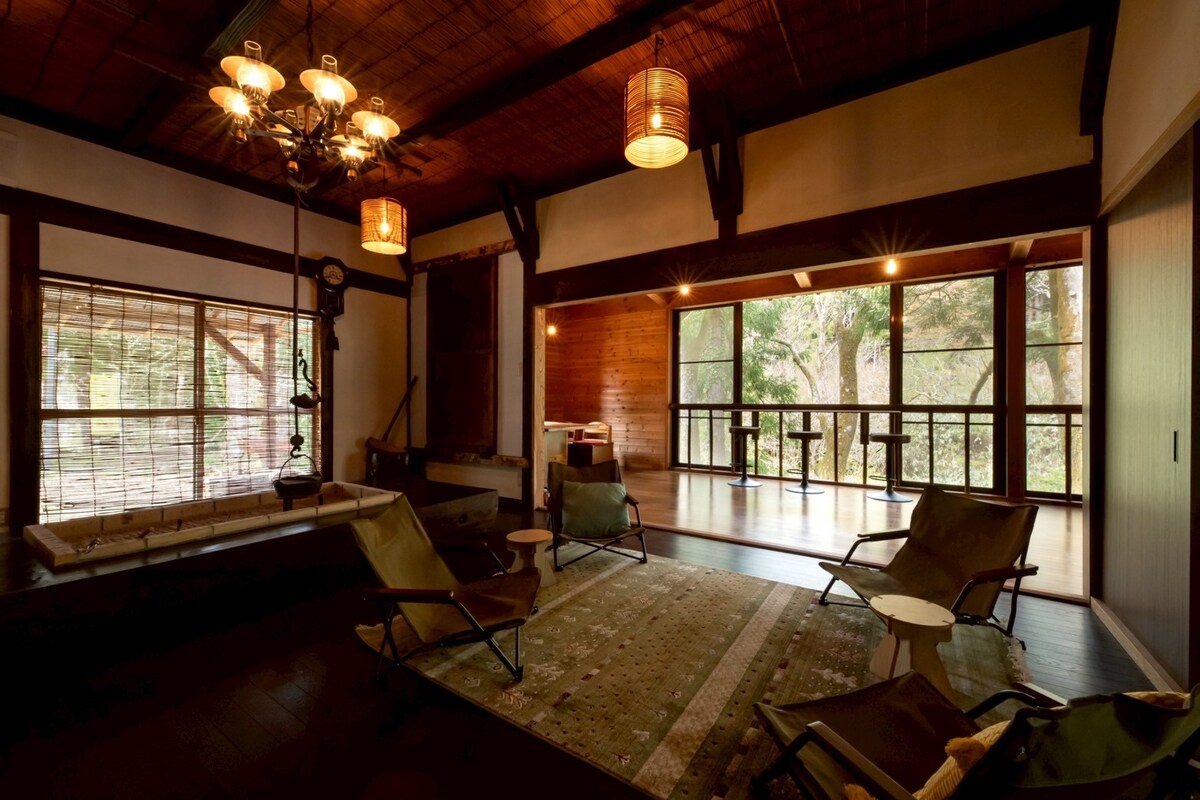 Traditionele privéwoning volledig gerenoveerd voor een groep van maximaal 5 reizigers [Geen extra kosten per aantal reizigers]. Op zoek naar traditionele Japanse woningen met moderne apparatuur? Zoek niet meer! Ons huis is voorzien van een IRORI, een traditionele Japanse verzonken haard / open haard. In de afgelopen dagen was dit type open haard erg populair, maar ze zijn nu erg zeldzaam. Het huis kijkt uit op het lokale bos; het is een perfecte plek voor diegenen die op zoek zijn naar rust en stilte moment.