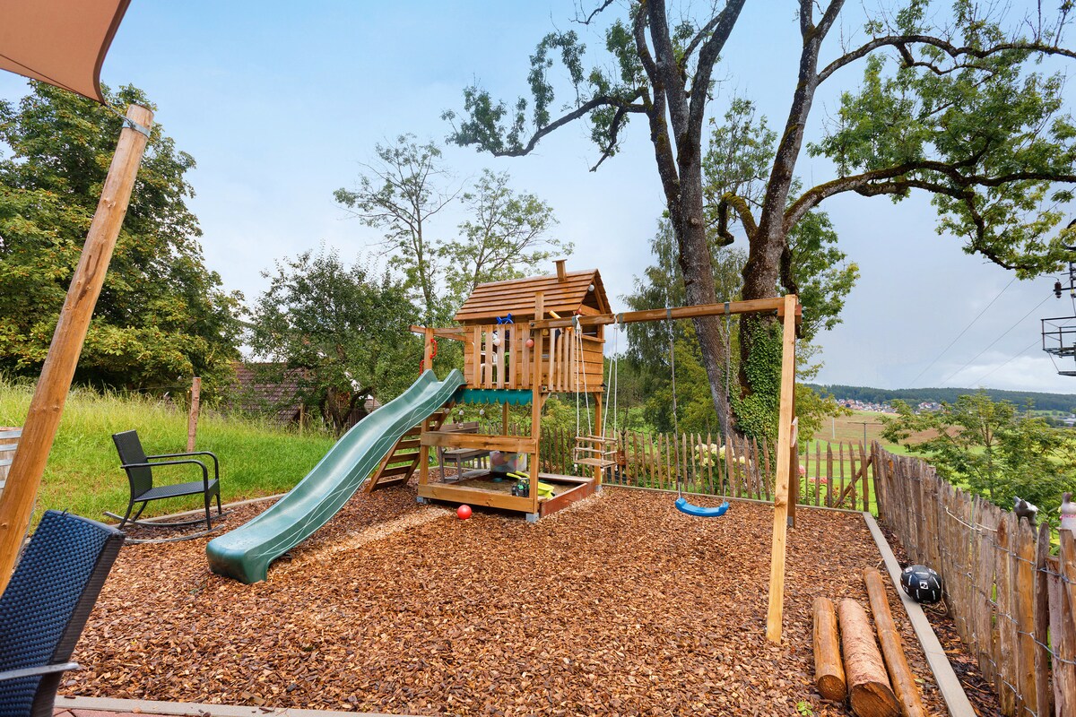 Ons Heidi House is gelegen midden in het Zwarte Woud, in een kleine vallei omringd door groene weiden. Naast het Heidi-huis is de boerderij waar we wonen Het Heidi-huis is vrijstaand en heeft een aparte ingang, dus je privacy is gegarandeerd. De boerderij is gelegen aan het einde van een weg, zonder doorgaand verkeer, en is omgeven door weilanden, fruitbomen en bos. Onze eigen beek en een kleine vijver met een bank op het terrein nodigen uit om te ontspannen.