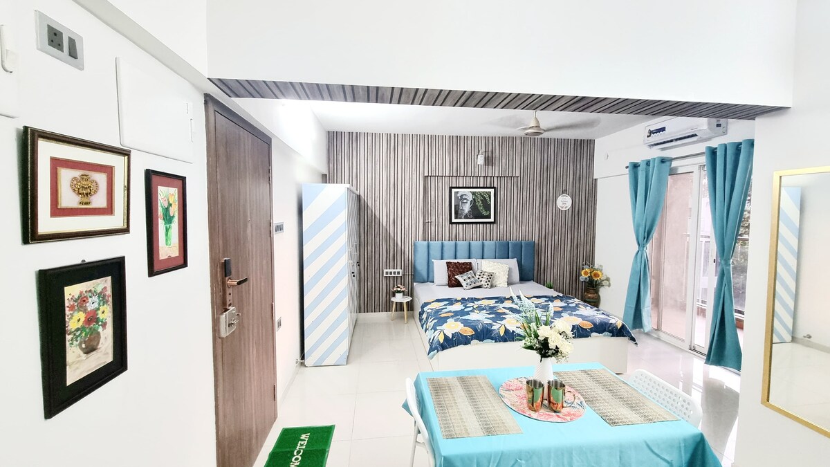 Verblijf in luxe in ons volledig ingerichte 1BHK-appartement, met een gezellige slaapkamer, twee badkamers (één aangrenzende slaapkamer, één gemeenschappelijk ) en een volledig functionele keuken met apparaten en basis kookgerei. Ontspan in de ruime woonkamer met een grote smart-tv en een elegant interieur. Geniet van high-end meubels die een thuis creëren. Perfect voor zowel korte als lange verblijven, belooft dit appartement comfort en gemak op een toplocatie in de stad. Boek nu voor een uitzonderlijk verblijf!