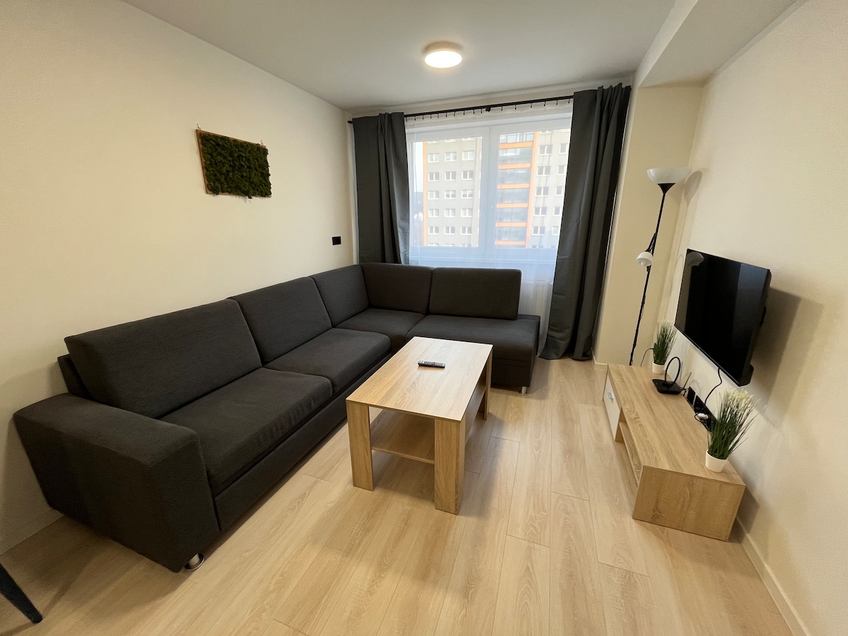 Het moderne, onlangs gerenoveerde appartement is gelegen in het hart van de stad, op slechts een paar minuten lopen van Aupark, de hoofdstraat en het treinstation. Het appartement is volledig ingericht en klaar voor je verblijf. Het bestaat uit een slaapkamer met een tweepersoonsbed en een woonkamer, die is verbonden met de keuken, een badkamer met een toilet. Het appartement is uiteraard uitgerust met wifi, tv en wasmachine. Aangenaam gevoel versterkt dat de ruimte splinternieuw is.