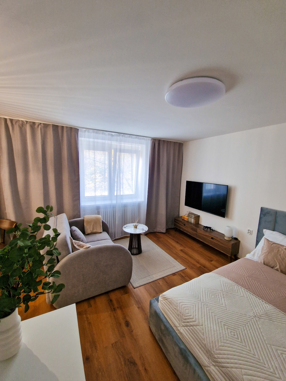Uw nieuwe minimalistische appartement op het landgoed Nova terasa biedt een comfortabel verblijf voor maximaal 2 personen. Het is gelegen in een nieuw landgoed op slechts enkele minuten van het centrum. De ruimte is volledig ingericht (keukenapparatuur, wifi, Antik-tv, ingebouwde wandluidsprekers, enz.) en is klaar voor je verblijf. Er is gratis parkeergelegenheid in de daarvoor bestemde ruimte vlak bij de voordeur. De veiligheid van het pand en de gasten wordt verzorgd door een particulier beveiligingsbedrijf. Een kopie van een legitimatiebewijs/paspoort kan vereist zijn VOORDAT een reservering moet worden bevestigd.