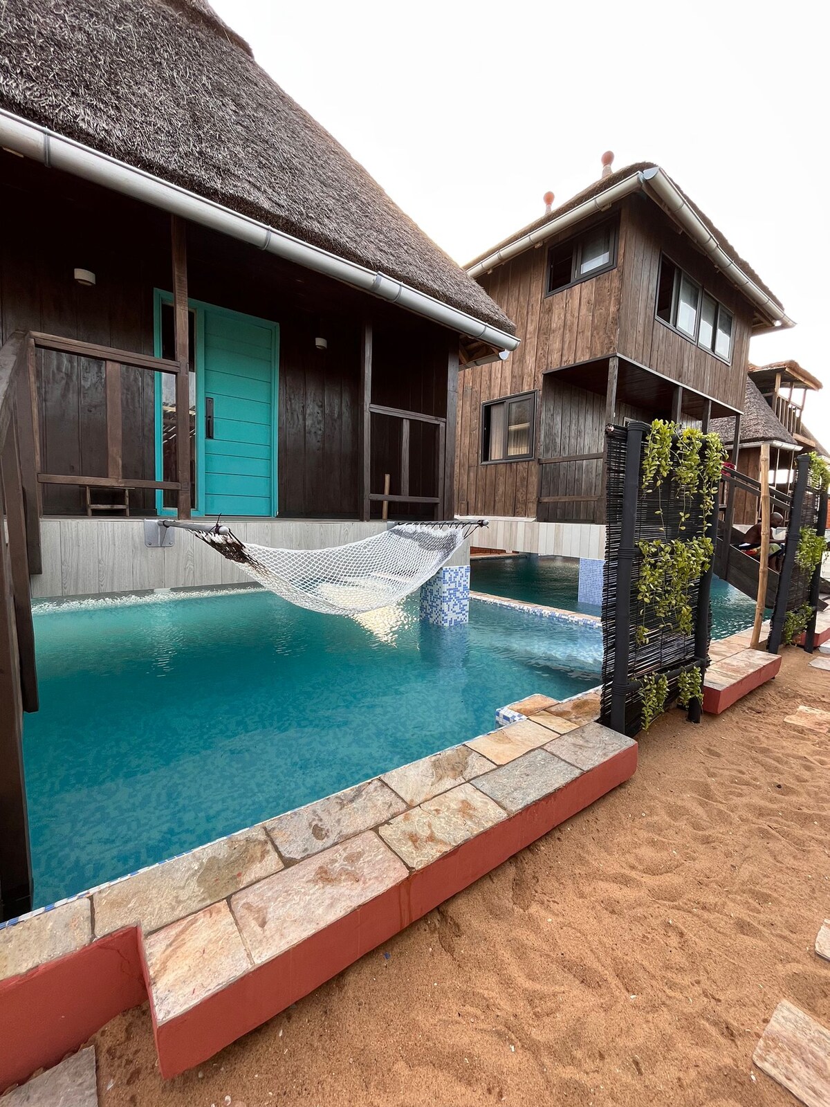 Deze plek is ideaal om te ontspannen en te ontspannen. Je wordt gehuisvest in een gezellige bungalow met een douche, wastafel en toilet, omgeven door velden en dieren (de boerderij heeft geiten, geiten en kippen). Een ontbijt, bereid met boerderijproducten, wordt aangeboden. Daarnaast kun je een typisch dorp in de buurt bezoeken, evenals het zeer grote moerassige bos van Lokoli.