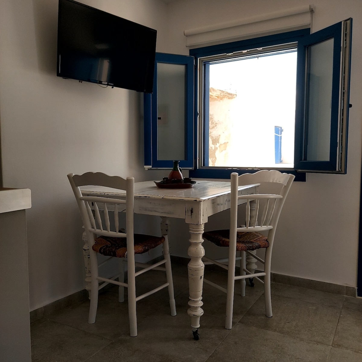 Panoramic port view apartment is fully equipped, ideally located a small complex with a private road, on a hill over the beach of Ios port. Focus on the breathtaking panoramic view of the Port, Chora and Santorini. The endless blue of the Aegean sea unfolds at your feet. Just a 3 minutes drive from Ios port and 8 min drive to Chora. We recommend you to rent a car, motorbike or atv, in order to explore all the beautiful beaches and Ios scenery. Feel free to enjoy your privacy with a great view.