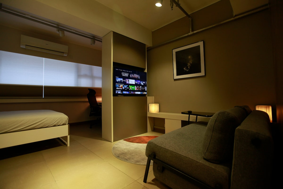 Deze loft ligt in het hart van het westelijke district van Hongkong en combineert modern comfort met nostalgische charme, op een steenworp afstand van bruisende gedroogde vismarkten, antiekwinkels en hipstercafés. Met tramlijnen in de buurt ben je perfect gelegen om de lokale vibes van Hongkong te verkennen – en vervolgens tot rust te komen in een ruimte die is ontworpen voor stedelijke ontdekkingsreizigers die erfgoed met een twist waarderen. 位於高陞街的復古潮流公寓。這裡既融合西環的市井煙火氣(海味鋪、古董街近在咫尺 ),又坐擁文青咖啡店的慢活節奏。電車聲、老香港的記憶與現代便利在此交織,特別適合想深度體驗地道港味 ,同時享受市中心的便利、豐富的夜生活的旅人。