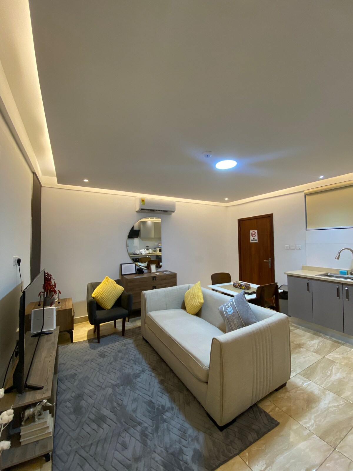 De suite is gunstig gelegen net buiten de snelweg Accra-Tema, op ongeveer 30 minuten van de internationale luchthaven Kotoka en op 15 minuten van het winkelcentrum Accra, en biedt gemakkelijke toegang tot zowel zakelijke als recreatieve bestemmingen. De Jade Prestige Suite beschikt over een ruime slaapkamer, een comfortabele woonkamer, een eigen balkon en een volledig uitgeruste keuken â allemaal zorgvuldig ontworpen om je comfort, stijl en een echte thuis-weg-van-huis-ervaring te bieden.