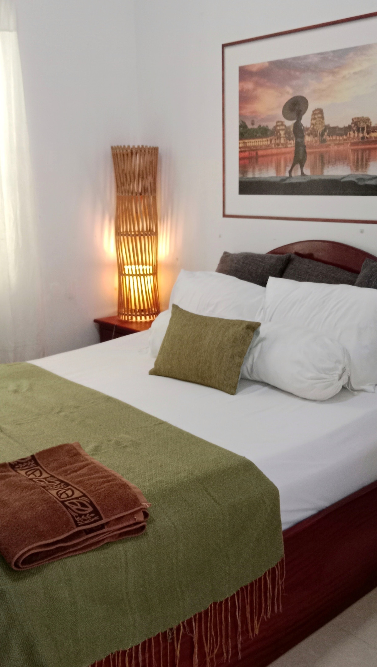 This EXTREMELY SPACIOUS newly built Loft beautifully combines contemporary finishes with trendy style. Built with romance in mind it would suit perfectly to couples, this one-bedroom serviced luxury apartment is designed with cool greens, rich blues and complimented with scattered hand-woven natural-fibre Khmer crafts. It's central Siem Reap - only a 5 minute walk to Pub Street (Old Market Area). The place has access to the Rambutan Resort pool which is set by a beautiful lush garden!