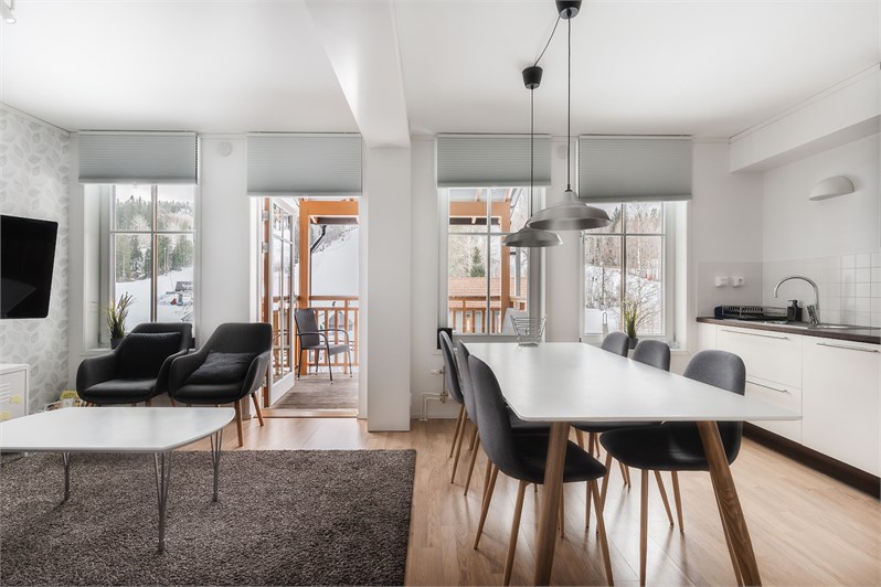 Comfortabel en goed uitgerust appartement uit 2016. Het appartement heeft zes gewone bedden verdeeld in twee slaapkamers en een slaapbank in de woonkamer. De keuken en woonkamer hebben een open plan dat een leuke ontmoetingsplaats vormt tussen skiën, fietstochten, dagtochten, vissen en ga zo maar door. Er is een balkon met uitzicht op de berg en een mooie sauna, evenals een wasmachine. Daarnaast zijn er baby-/kindervoorzieningen, speelgoed, bordspellen, BT-luidsprekers, tv met streamingdiensten en boeken om te lezen.