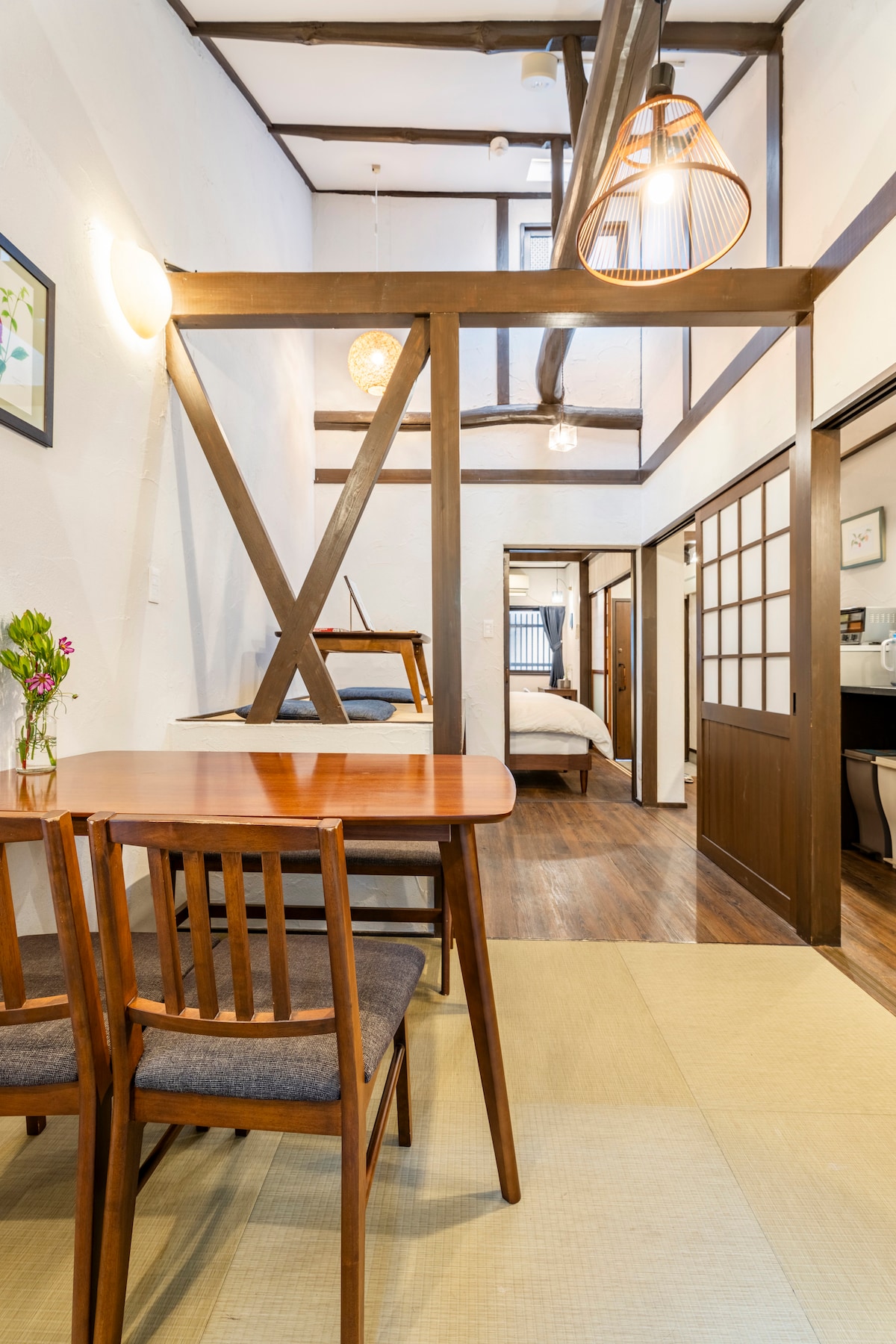 1. Dit is een gerenoveerde traditionele Kyoto machiya van meer dan 140 jaar oud, gelegen in het stadscentrum in de buurt van de Kamo-rivier, belangrijke bezienswaardigheden en winkels. 2. Houd er rekening mee dat, vanwege het oorspronkelijke ontwerp, de hoogte van de ingang ongeveer 170 cm is en de trap naar de tweede verdieping steil is. Er zijn leuningen aanwezig, maar de accommodatie is mogelijk niet geschikt voor kleine kinderen, oudere gasten of gasten met mobiliteitsproblemen. Neem contact met ons op voordat je reserveert als je vragen hebt.