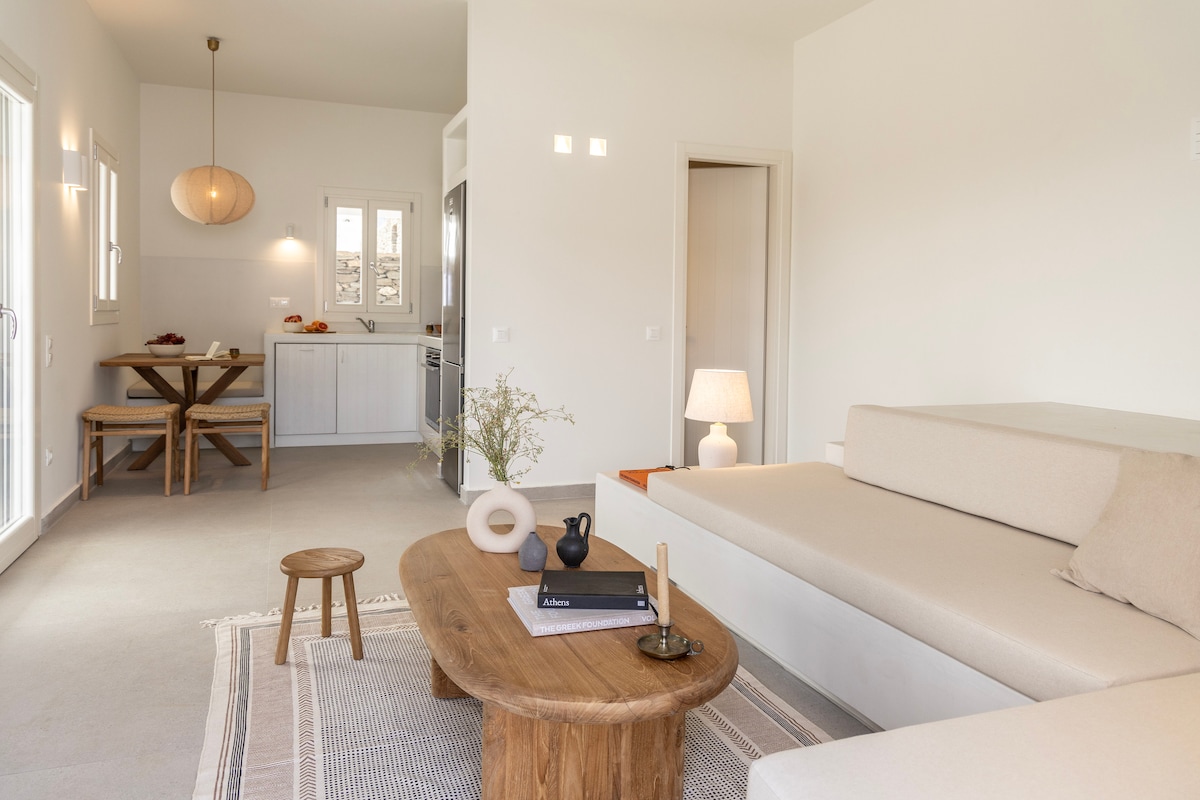 We ontvangen je graag in onze accommodatie en laten je kennismaken met de wereld van rust en ontspanning die wordt aangeboden door de combinatie van hout, stro en steen in de ruimte, op slechts een steenworp afstand van de Chora van Kythnos.
