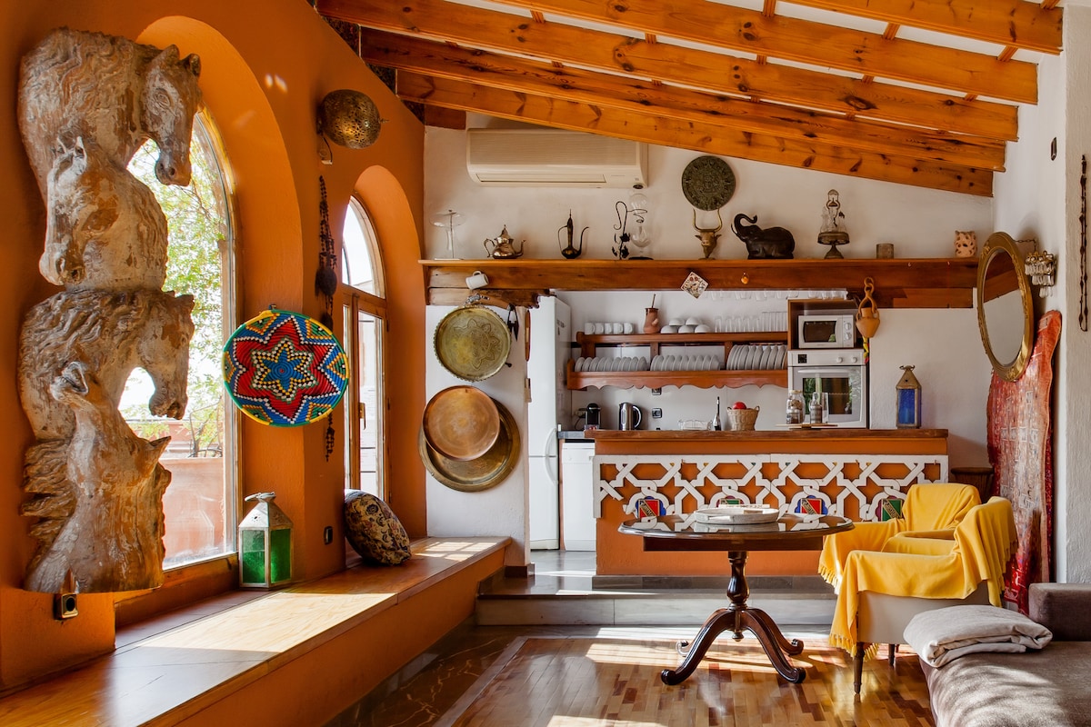 CASA DEL BESO Het huis is zeer authentiek, met een terras en uitzicht op het Alhambra, het werd ontworpen en gerehabiliteerd door onze vader Manuel, een architect die emigreerde met onze grootouders en die jaren later terugkeerde naar zijn land, naar onze geliefde Granada. Het is gelegen aan een voetgangersstraat in de Lower Albayzin, op 300 meter van Plaza Nueva, een grotendeels voetgangersgebied van UNESCO. Dankzij de locatie heb je de auto niet nodig en loop je naar de meest karakteristieke plekken van Granada.