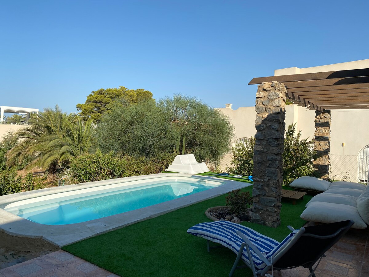 Este alojamiento único tiene personalidad propia. Desconecta y relájate junto al mar en esta casa con diseño orgánico y todas las comodidades. Vive la experiencia de despertar junto al mar, a solo unos escalones del agua del Mar menor y con acceso directo desde la terraza a la piscina, el lugar ideal para pasar unas vacaciones en la playa y disfrutar de la mejor puesta de sol en la terraza. A 2 minutos a pie del Mar mediterráneo, estar entre dos mares es un lujo.