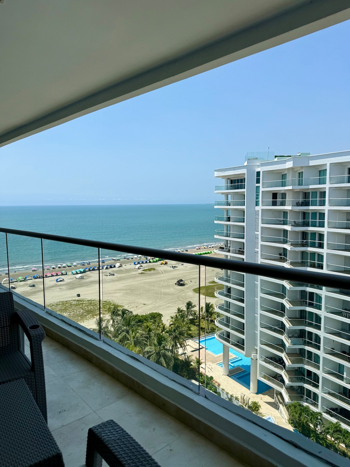 Exclusief appartement in een gebouw aan het strand met directe toegang tot het zand. Slechts 7 minuten van het historische centrum van Cartagena, perfect om te genieten van het Caribisch gebied. Slaapkamer met een queensize bed + slaapbank (180x110 cm) in de woonkamer 🛁 2 complete badkamers 🌅 Eigen balkon met hangmat 🏊 2 zwembaden (één aan het strand), jacuzzi en sauna 💪 Fitnessruimte, kinderruimte en privéparkeergelegenheid 📶 300 Mbps wifi – ideaal voor werken op afstand 🍽️ Dicht bij restaurants, bars en supermarkten Babybedje op verzoek beschikbaar