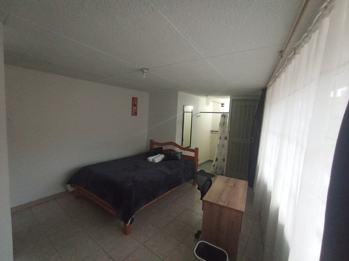 Comfortabel en mooi appartement met alle voorzieningen, warm water en wifi. Het is gelegen in het achterhuis van mijn familie, waar een ruime patio is, de ingang van het huis wordt gedeeld. Dit prachtige appartement is volledig uitgerust met wifi, kabel-tv, 1 slaapkamer, 1 eigen badkamer, koelkast, keuken, wasmachine, wasruimte. Het is gelegen in het noorden van Bogota.