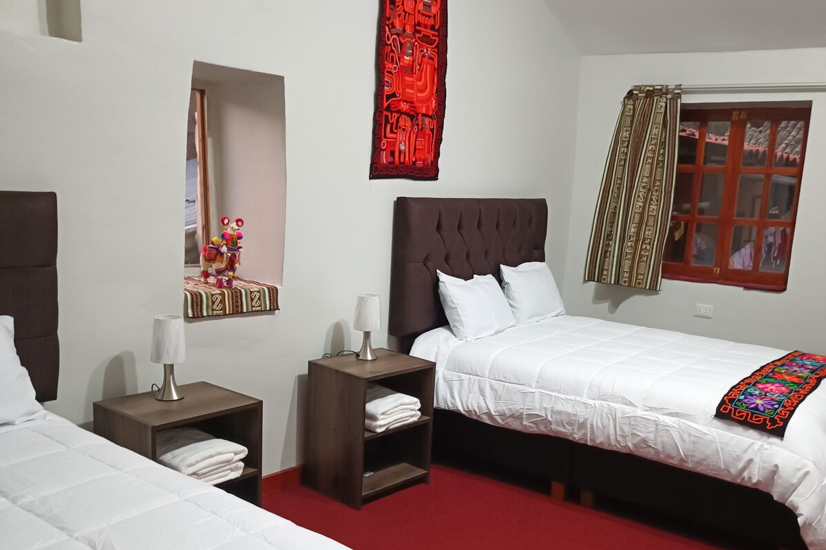 Trek je terug in dit charmante landhuis in de Sacred Valley. Dompel jezelf onder in de natuur met een adembenemend panoramisch uitzicht op de bergen Sawasiray en Pitusiray. Deze rustige plek ligt in het hart van de Heilige Vallei en is perfect voor diegenen die op zoek zijn naar rust en ontspanning weg van de drukte. LEES ZORGVULDIG: Koppels of individuen kunnen het hele huis boeken met slaapkamer 1, terwijl groepen alle 3 slaapkamers kunnen reserveren. Allemaal privé. 12 minuten lopen van de hoofdweg of 4 minuten rijden.