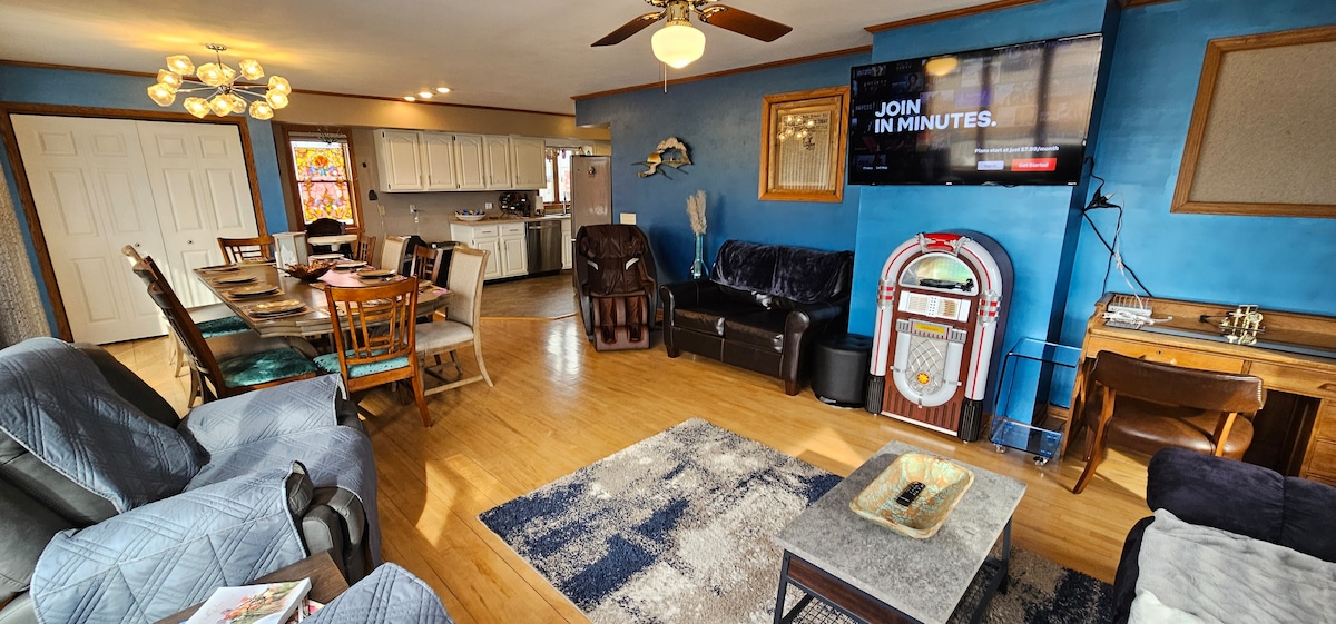 Gunstige ligging, comfort & privacy van een ruime woning. Neem het hele gezin mee naar dit grote, unieke 100 jaar oude huis. ZEER korte wandeling naar Anytime Fitness, McDonald's, Pizza Hut & Subway. Korte rit naar Viroqua 's bloeiende centrum en prachtige lokale restaurants. Wasmachine/ droger, alle schoonmaakbenodigdheden (afwasmiddel, wasmiddel, enz.) zijn hier, volledig gevulde keuken (met basisbenodigdheden zoals olijfolie, zout, peper, enz.), massagestoel (nodig na een zware dag van alles). Grote 3 seizoenskamer & terras