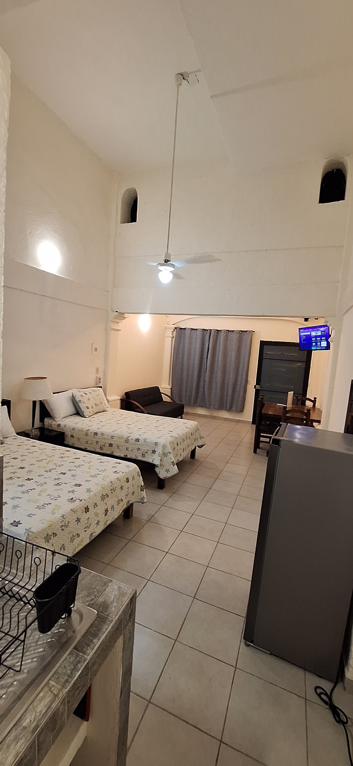 Gloednieuw appartement, onlangs ingericht met 3 airconditioners en 3 plafondventilatoren en wasmachine en droger op een ongeëvenaarde locatie. Er zijn twee ramen in elke slaapkamer aan de buitenkant in het centrum van Santa Cruz, La Crucecita, Huatulco. Vanaf de begane grond zijn er 2 trappen om het appartement te bereiken. Handig gelegen waar banken, markten, restaurants en winkels in overvloed aanwezig zijn. Ook bus-/busvervoer via ADO en Express Colombos in de buurt. Er is alleen parkeergelegenheid op straat beschikbaar.