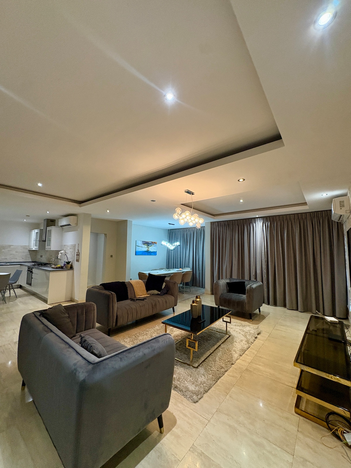 A perfect 1 bed apartment located in a quiet, residential neighbourhood at East Airport, Accra-Ghana. It provides a peaceful retreat while being close to local attractions. All bedrooms have on-suite bathrooms with Wifi connectivity This open-plan property has a warm and relax atmosphere. The kitchen is stocked with all the essentials, and there’s a small private garden where you can relax after a day of sightseeing. It’s a homey space that’s perfect for both longer and short stays.