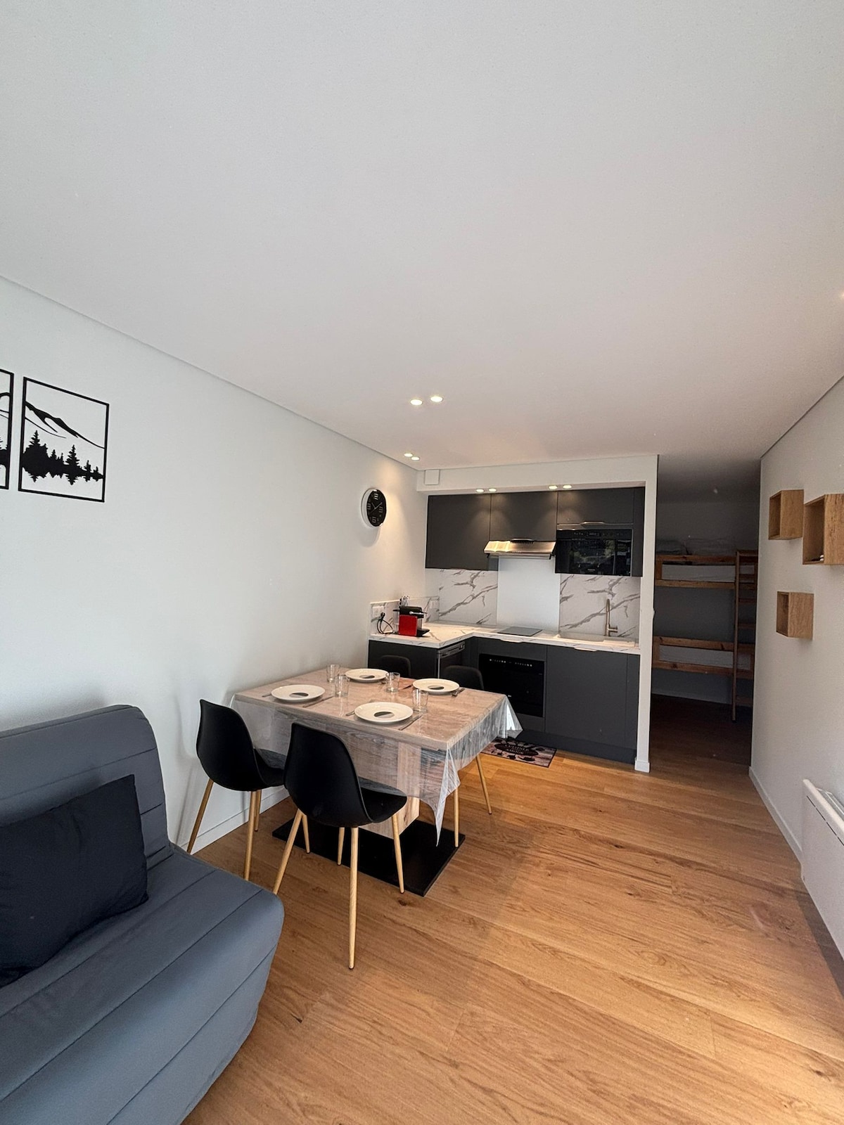 Magnifique studio cabine de 27m2, entièrement rénové. Emplacement exceptionnel, au cœur de la station, l’escalier menant au front de neige est au pied de l’immeuble, les commerces et restaurants se trouvent tous dans un rayon de 100 mètres. Parking public gratuit en bas de l’immeuble. Coup de cœur assuré avec une décoration chaleureuse associant modernité et authenticité. Idéal couple ou famille avec enfants. Au 2ème étage, orienté plein sud offrant un bel ensoleillement toute la journée.