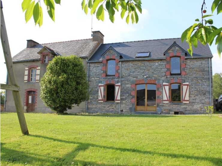 Aandacht, landhuis, haan, kerk, spinnen en vliegen zijn aanwezig. Dicht bij het Brocéliande bos, tussen de steden Guer, Malestroit en Ploërmel, in een klein rustig dorp. Het huis bestaat uit een kamer met een kitchenette van ongeveer 40 m2, met een onlangs gerenoveerde badkamer en toilet. Boven, twee slaapkamers, één grote.