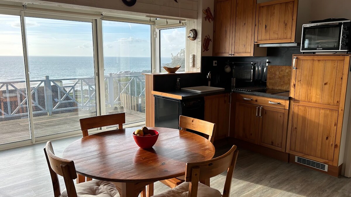 Je bent op het juiste adres als je contact wilt maken met de zee en de natuur in een magische regio, de Cotentin. Marie-Line 's huis: Het is een 'atypisch eilandhuis' op 500 meter van het strand van Sciotot, met een adembenemend uitzicht op het westen om te genieten van de prachtige zonsondergangen en een groot aangelegd terras. Je vindt er alle comfort om daar te verblijven, zomer en winter, maar ook om met uitzicht op zee te telewerken, met het wifi-netwerk.