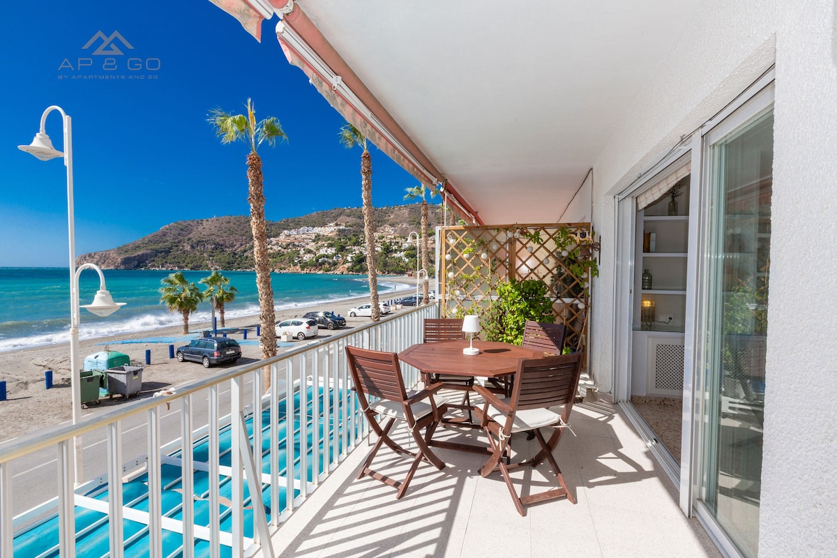 Appartement aan zee in Almunecar, Costa Tropical met gemeenschappelijk zwembad. Twee slaapkamers, twee badkamers, licht en ruim appartement aan zee, prachtig ingericht met uitzicht op de Middellandse Zee. Terras op het zuiden gelegen, airconditioning (verwarming/koeling) in zowel slaapkamers als lounge, snelle wifi, goede locatie. Gezins- en huisdiervriendelijk. Toeristische vergunning: VUT/GR/-00826