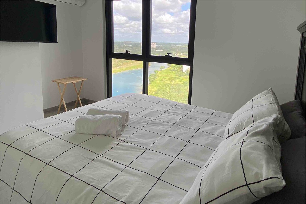 **Ontdek de luxe ervaring in Mérida: moderne appartementen met uitzicht op het meer** Welkom bij je perfecte vakantiebestemming in het noorden van Mérida! Ons moderne, minimalistische appartement biedt een ongeëvenaarde luxe ervaring, waarbij de rust van een natuurlijke omgeving wordt gecombineerd met eersteklas voorzieningen. Word elke ochtend wakker met een spectaculair uitzicht op een serene vijver en weelderige groene gebieden, en bereid je voor op dagen vol comfort en plezier.