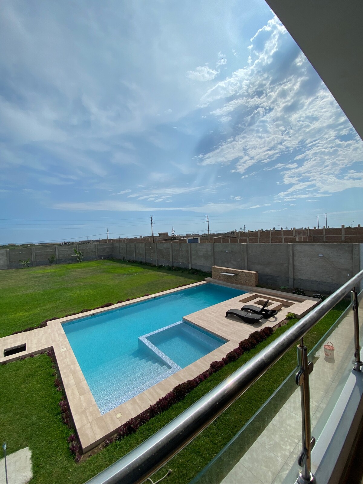 Ontspan met het hele gezin op deze rustige plek. Wij zijn een huisdiervriendelijke en privéwoning, we hebben alle voorzieningen, water, water, licht, licht, wifi, directv, zwembad, jacuzzi, 5 slaapkamers, 5 badkamers, grill, houtoven, Chinese doos en slechts 20 minuten van Trujillo