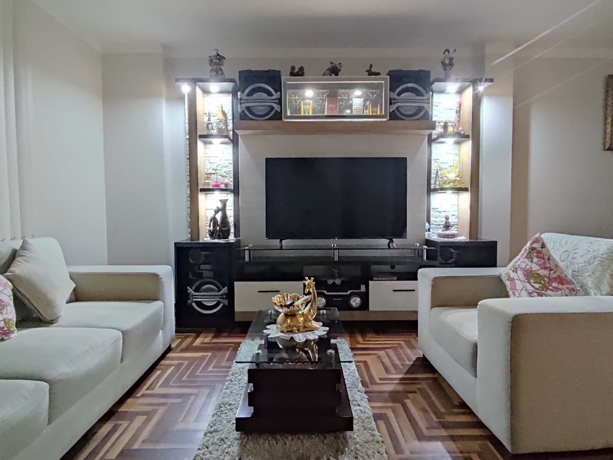 "Ari's Alojamiento Cajamarca" siéntete como en casa, Te esperamos para que disfrutes de este acogedor y confortable alojamiento tranquilo y céntrico en la hermosa ciudad de cajamarca. Nos encontramos a 5 min en carro y 10 min caminando, de la plaza de armas y la Recoleta. cerca a los 3 centro comerciales es una zona tranquila. el departamento esta ubicado en el 3er piso, es una casa familiar, el acceso es compartido pero al ingresar al departamento es totalmente privado para los huéspedes.