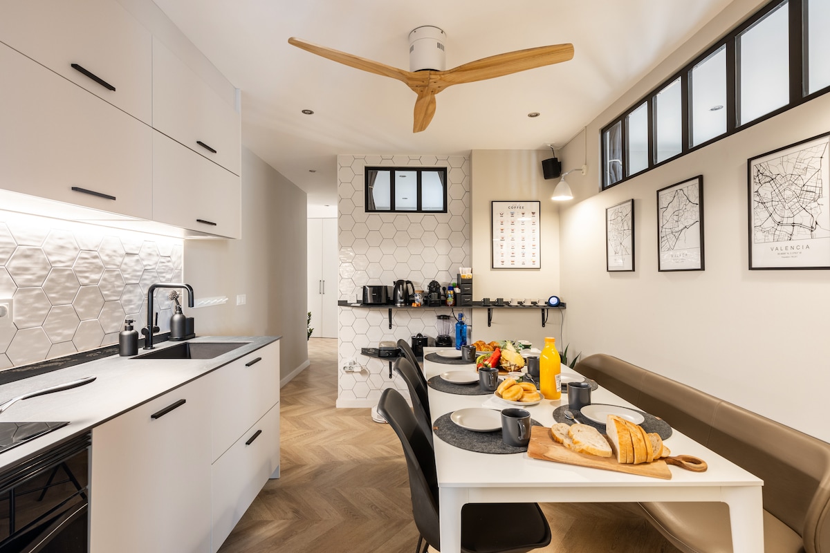 This brand new decorated appartement in the center of Malaga is perfect for working remote or holiday! The authentic high spanish ceilings take care for a lot of light and the modern furniture gives the house all the cosiness you need! The Swiss Sence hotelbed is as comfi as a 5 star hotelbed and the small terrace in the livingroom is perfect for morning coffee and the shared rooftop ideal for a coffee or sandwich in the sun! Malaga’s best choise!