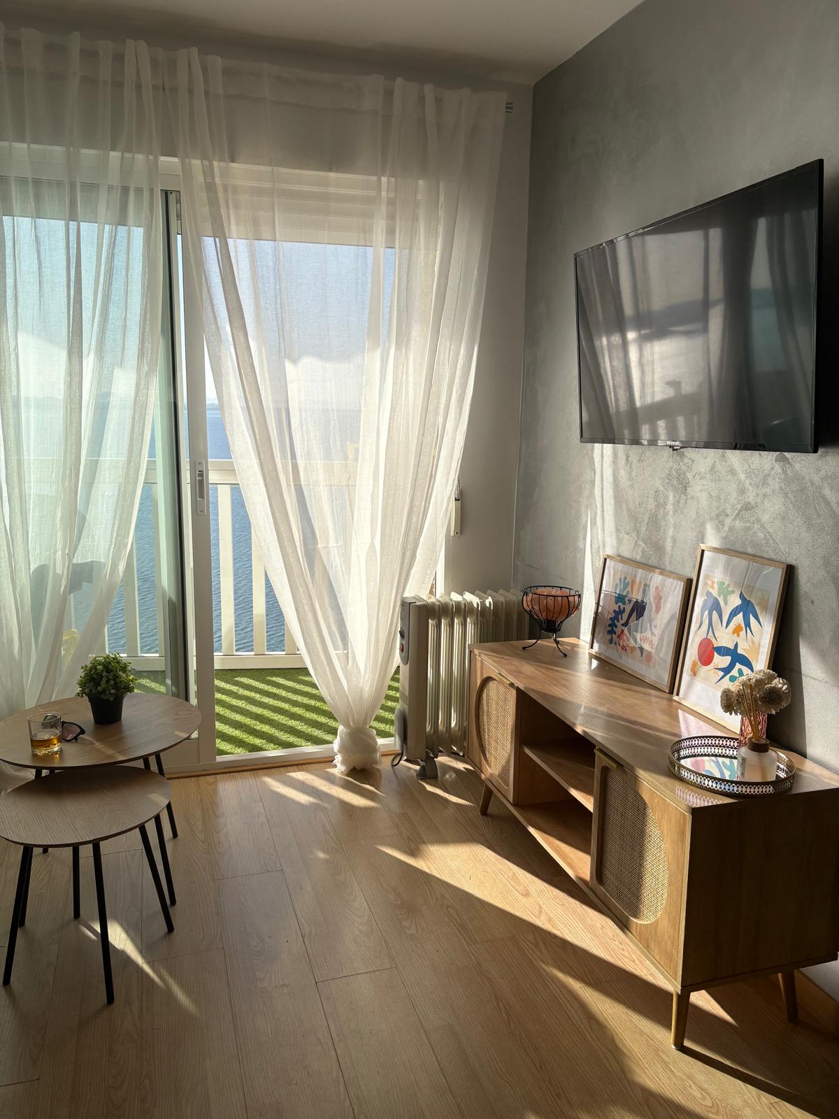 Deze unieke plek heeft zijn eigen stijl. Bij het betreden van het appartement heb je de indruk dat je de zee in gaat! Het uitzicht is zo mooi dat niets anders telt dan de zee, het geluid van de wind en de golven ontspant en laat je naar een andere wereld reizen. Ons appartement heeft twee slaapkamers, een met een tweepersoonsbed en een eigen badkamer en de andere met twee eenpersoonsbedden. Het is ideaal voor 4 personen die van ruimte en comfort houden! Het appartement is zeer goed uitgerust, zodat onze gasten niets tekort komen.