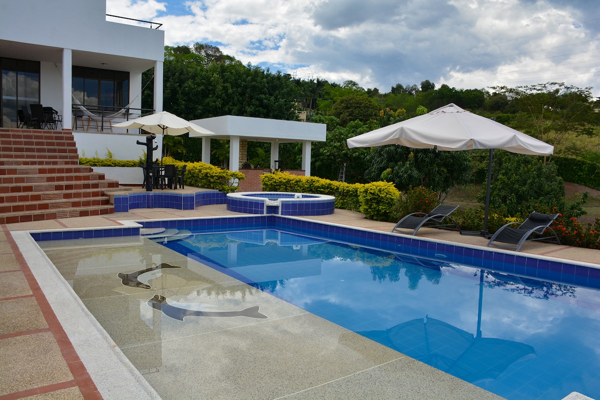 Geniet van een prachtig uitzicht op de centrale bergketen en Colombiaanse valleien. Nu met breedband wifi! (maximaal 4 apparaten, 60 Mbps) Mooie tuinen omringen het pand, en de verlichting van het huis is perfect; zonlicht gedurende de dag en goed verdeelde lampen 's nachts. De villa beschikt over een complete keuken, woonkamer, eetkamer, volledig privézwembad, geluidsinstallatie en bedden met lakens. We hebben GEEN tv-dienst. Nationaal toeristenregister nr. 94066
