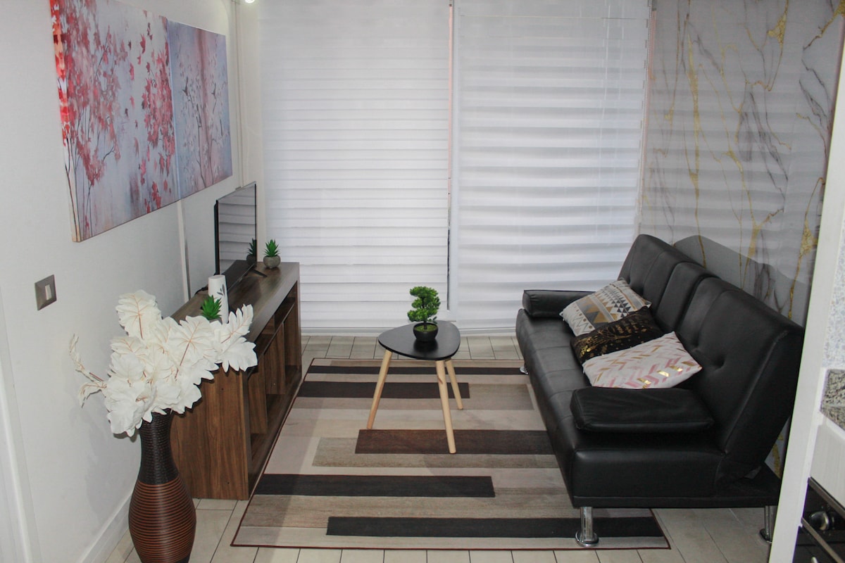 Moderno y acogedor departamento con aire acondicionado en el corazón de Santiago. A pasos del metro y del Centro Histórico, rodeado de museos, mercados y restaurantes. Cama king, cocina equipada, balcón y wifi rápido, ideal para viajes o estadías largas. Edificio seguro con conserje 24/7. Atención personalizada, check-in flexible y recomendaciones locales para que disfrutes la ciudad como un residente, con comodidad y tranquilidad.