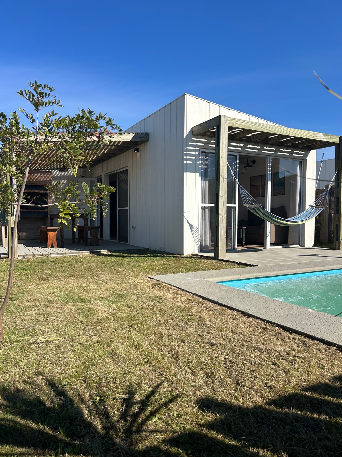 🌿 Nature in harmony. Exclusive cottage with a private heated pool set in a vibrant garden where hummingbirds visit every day. Ideal for couples seeking tranquility, privacy and true disconnection in La Paloma. High ceilings, natural light and a warm, cozy atmosphere invite you to unwind. Designed for a simple, relaxed experience: no kitchen or grill, perfect for enjoying local cuisine or light meals on the deck. A small paradise to rest and reconnect with nature. 🌺