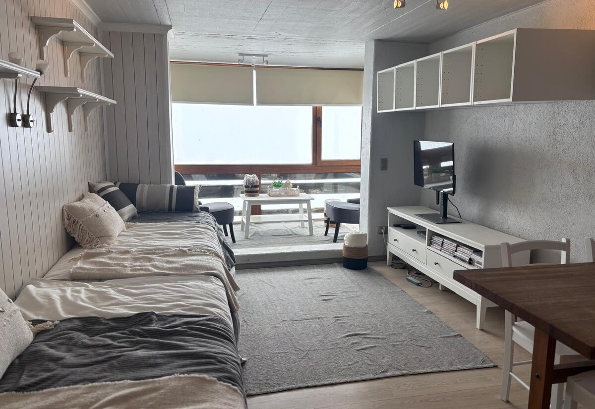 Appartement in skicentrum, functioneel en gezellig. De studio bestaat uit een kamer met een tweepersoonsbed en een slaapbank, ideaal voor twee personen, maar geschikt voor drie personen. Ondergronds parkeren, wifi, tv. Kluisjes om apparatuur op te slaan en de bus naar het hotel te benaderen.