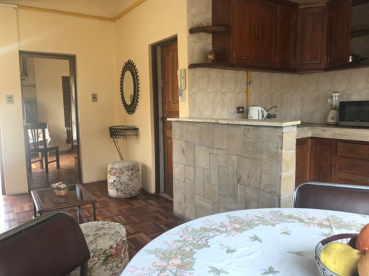 Mooi appartement op 30 minuten van het centrum met alle faciliteiten en directe ingang vanaf de straat gelegen in Mallasa, op loopafstand van de Moon Valley, dierentuin, ATV en paardentochten, typische boliviaanse restaurants en nog veel meer.