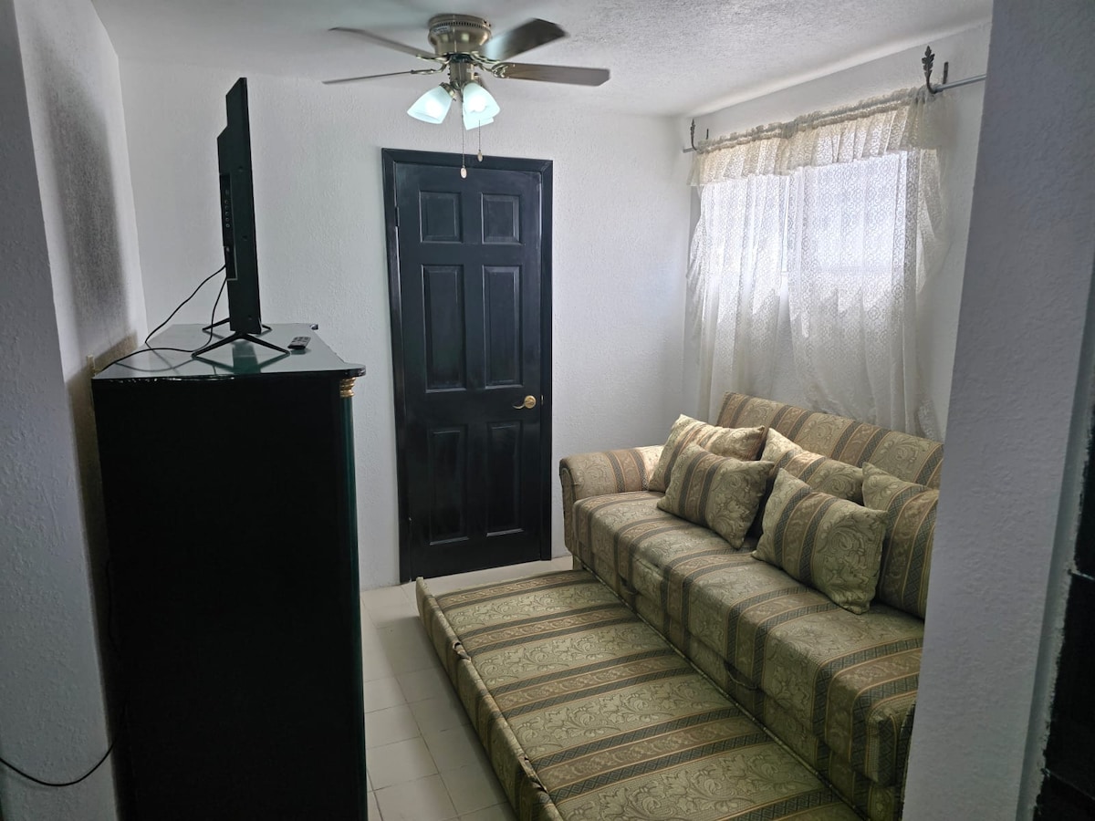 Studio-appartement (geen scheidingen), geniet van onze rustige en centrale ruimte en gemakkelijk bereikbaar, dicht bij het Amerikaanse consulaat (op 7 minuten), winkelcentrum Las Misiones, luchthaven, vrachtwagencentrum, Central Park, Central Park, winkels en supermarkten, winkelpleinen en supermarkten, banken, twee blokken van Avenida Tecnológico. We hebben een strijkijzer, minibar, magnetron, koffiezetapparaat, kookbenodigdheden, grill, bewakingscamera 's, bureau, bureau, kledingkast, ruime badkamer.