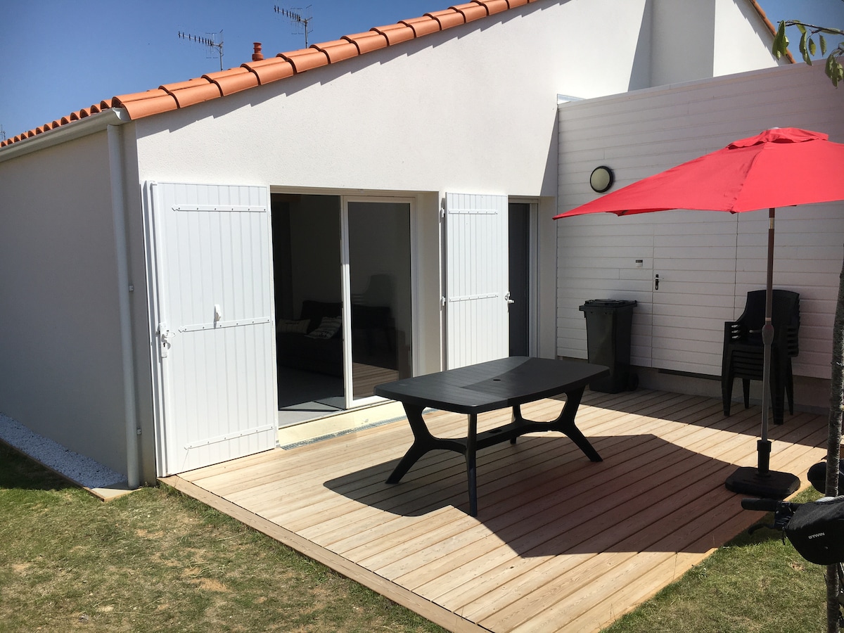 Située à la Grière, la maison est à proximité des commerces(boulangerie, charcuterie...)et des animations. La plage est à 5 min à pied! Le logement est composé : - une cuisine aménagée(frigo,plaque de cuisson, cafetière bouilloire, micro onde...) -un salon (canapé lit, table basse, TV) -une chambre(lit 140x190, table de chevet) - une salle de bain( douche, WC, lavabo) - un dégagement (placard, porte manteau) - 2 terrasses ( abri de jardin, barbecue , salon de jardin) - parking privé et cloturé