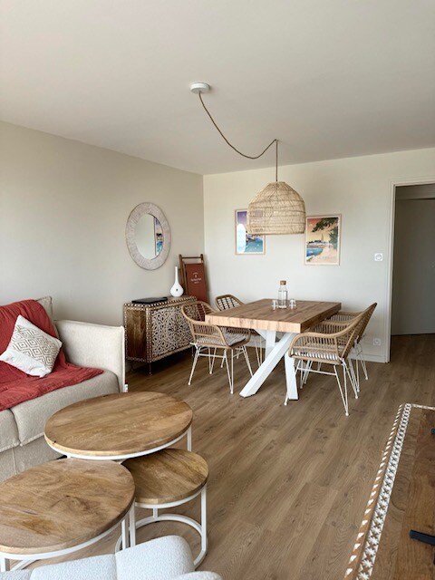 Welkom in mijn volledig gerenoveerde studio, een oase van rust voor een sereen verblijf aan zee. Deze lichte, zorgvuldig ingerichte studio heeft een slaapgedeelte met een tweepersoonsbed (140 x 200) en een slaapbank om af en toe op te slapen (bijvoorbeeld voor een kind). De keuken is volledig uitgerust met een vaatwasser, koffiezetapparaat, waterkoker, broodrooster en zelfs kruiden om je gerechten te verbeteren. Badkamer met toilet. Geniet van tv en snel internet om verbonden te blijven.