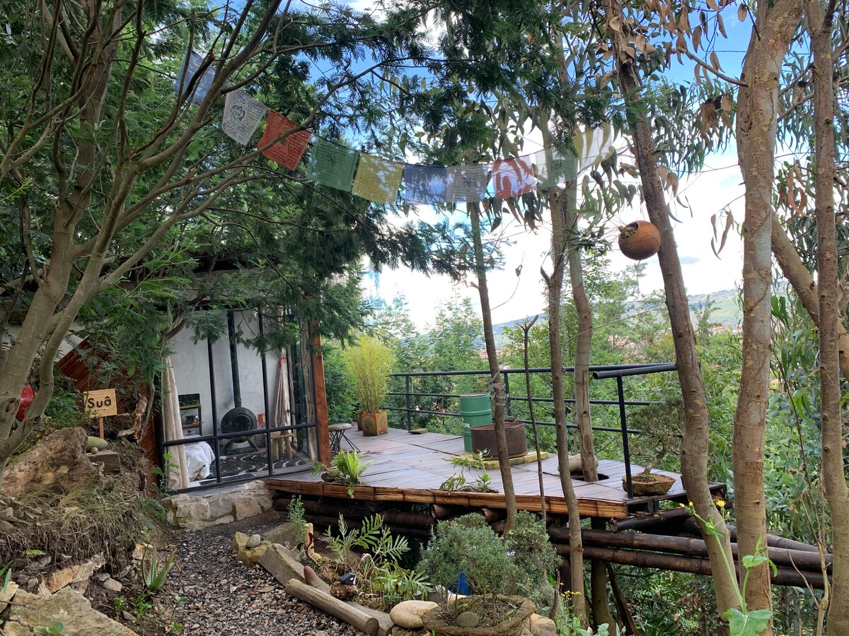Kom en geniet van onvergetelijke dagen als een stel in een ongelooflijke onafhankelijke hut, het natuurlijke uitzicht op het Tominé-reservoir, de uitstekende locatie in het dorp Guatavita, maar op een afgelegen terrein met veel bomen, de omgeving met natuurlijke bossen en persoonlijke aandacht garanderen je de beste accommodatie in Guatavita. Ideaal voor rust en creativiteit. Het heeft wifi. Privacy, natuurlijke omgeving en comfort.