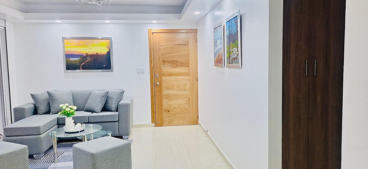 Ontspan met het hele gezin in dit huis waar de rust ademend is. Geniet van een minimalistische, rustige en veilige ruimte. Appartement op de 3e verdieping met een capaciteit voor 4 personen comfortabel (2 kamers) en maximaal 6 (slaapbank + Piso-matrassen). - 5 minuten naar restaurants, supermarkten en het centrum van La Vega. - 15-20 minuten van de luchthaven van Santiago - 20-25 minuten van Santiago, Jarabacoa, Moca en Bonao.