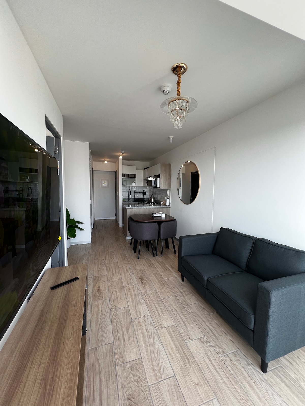 Moderno y acogedor departamento de una habitación, ubicado en zona estratégica de Barranco, límite con Miraflores, frente al MAC y a 5 min de Larcomar. Situado en el piso 9 con vista interna, cerca de museos, parques, bares y restaurantes. Ideal para parejas, viajes de trabajo o familias pequeñas. Equipado con TV en sala y dormitorio. Opcional: cochera y cuna corral. No está permitido fumar dentro del alojamiento.