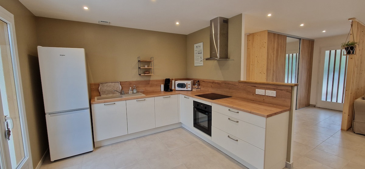 "Het nest van liefhebbers" is de ideale plek voor koppels die op zoek zijn naar ontspanning en zenitude. Dit huis van 70m2 volledig gerenoveerd is ingericht en ingericht in tinten en natuurlijke materialen door een verslavende inrichting. Deze gezellige cocon is de perfecte plek om twee personen te ontmoeten en een goede tijd te hebben als minnaar. De +: jacuzzi, massageruimte, videoprojector met thuisbioscoop Mooie diensten, nette decoratie en mooie materialen zoals gewaxt beton, beddengoed, biologisch katoen.