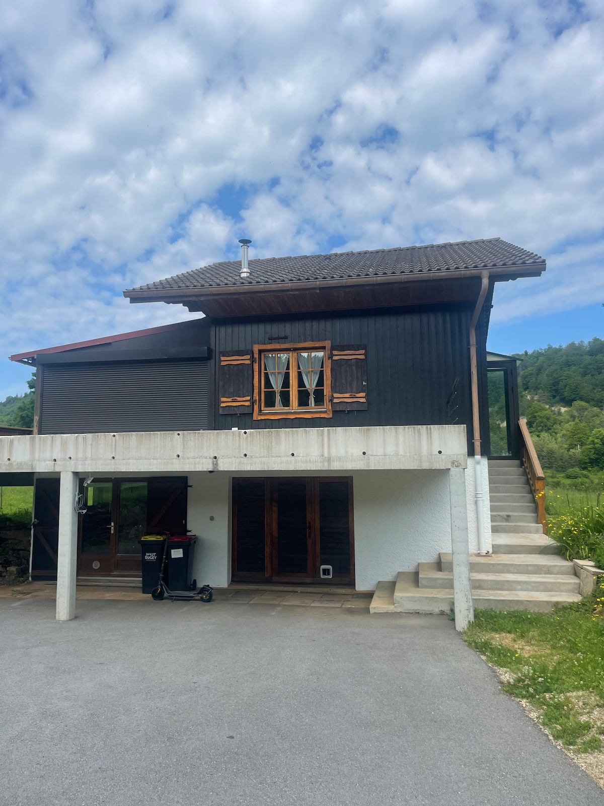 Eco-gerenoveerde studio van 40 m2, met open haard, 3-sterren gecertificeerd, in Haut-Bugey, tussen weiden en bossen, 1000 meter boven de zeespiegel, op de begane grond van ons huis, aan het einde van een klein gehucht, met toegang tot een zeer grote tuin, LPO gecertificeerd, gecultiveerd in permacultuur, met fruitheggen en moestuin. We zorgen ervoor dat onze tuin een evenwichtig (en esthetisch!) ecosysteem is. We delen graag onze groenten en kennis met bezoekers die bij ons verblijven!